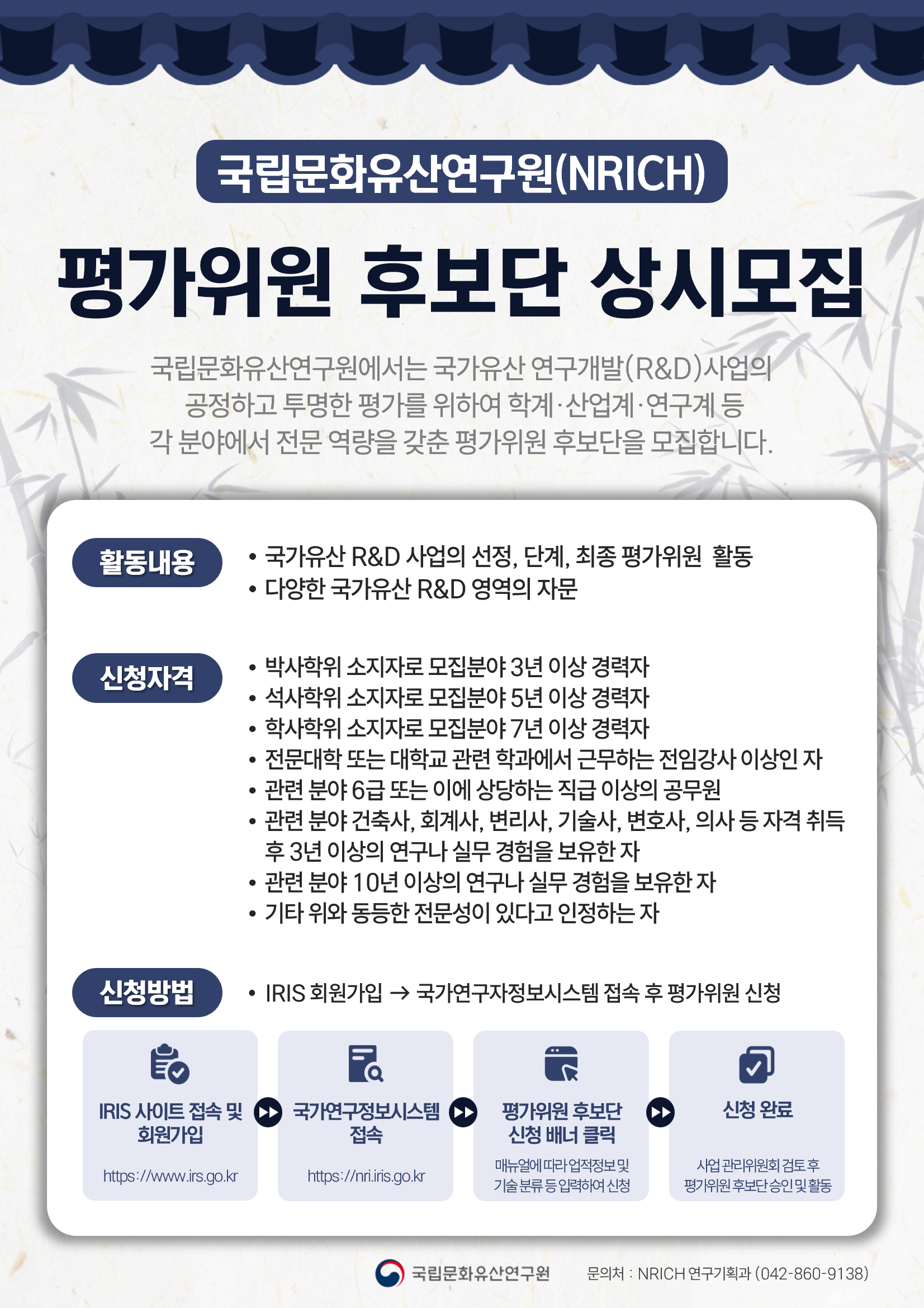 (본문부 붙임파일) [본문] 국가유산분야 연구개발과제평가위원 후보단 상시모집 안내.pdf